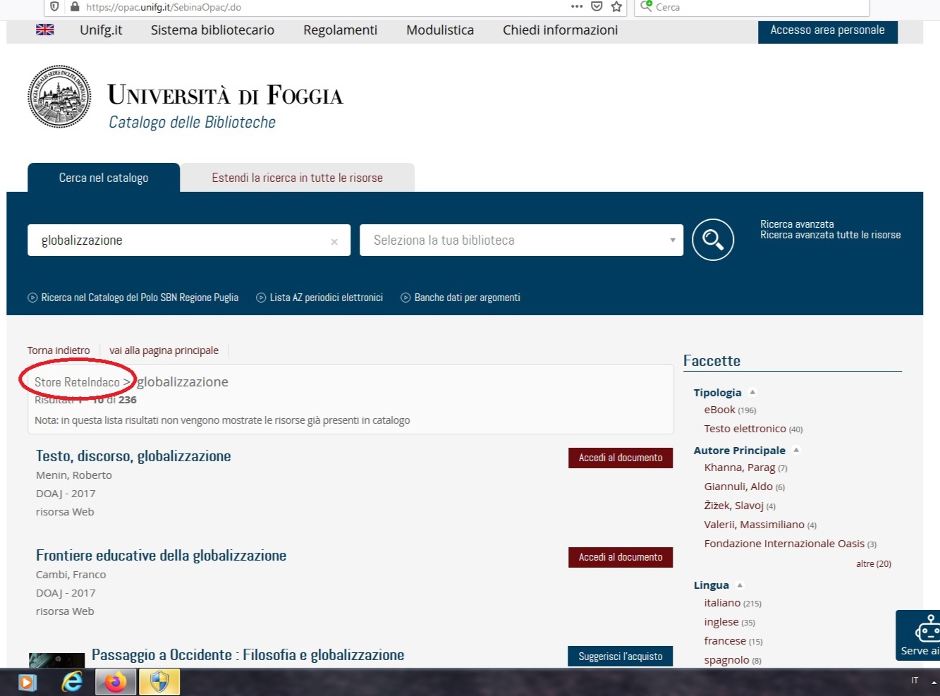 Risorse digitali: accesso ai contenuti di ReteINDACO dall’Opac Unifg